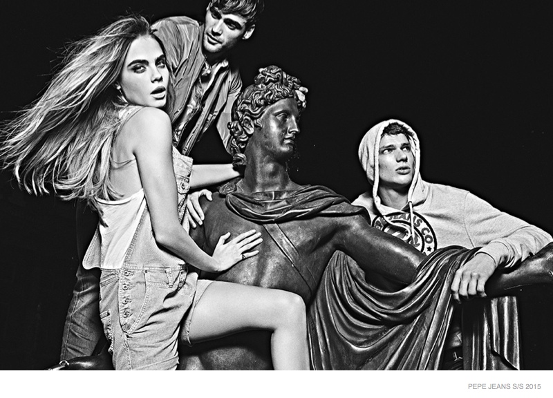 Cara Delevingne está de vuelta para la tercera temporada seguida de la marca denim Pepe Jeans. La belleza británica posó junto a dos modelos en esta serie de imágenes en blanco y negro tomadas por Mario Sorrenti. Se unió a estatuas y agua para hacer un trío increíble con una serie de imágenes y un vídeo. ¿Qué os parece?
