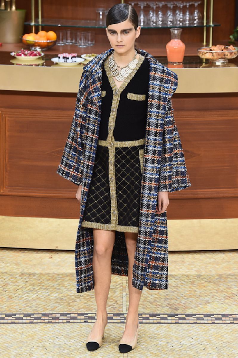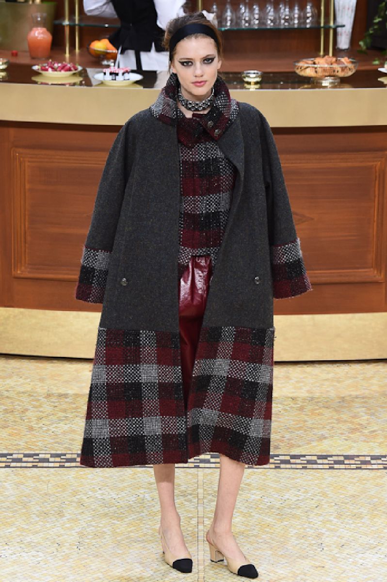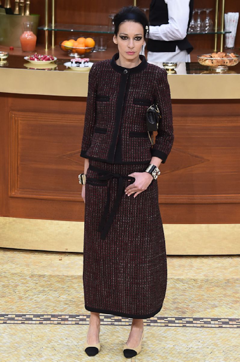 Como cada temporada, Chanel ha abierto esta mañana la penúltima jornada de la Semana de la Moda parisina bajo el título de Brasserie Gabrielle. Una puerta giratoria ocultaba un restaurante típicamente francés lleno de mesitas y sillas tapizadas en rojo en las que los invitados pudieron degustar su desayuno a lo Coco. Más tarde, cuando hubieron ocupado sus asientos, comenzaron a desfilar las modelos encabezadas por Cara Delevingne (que también cerró el desfile), dejando ver numerosos dos piezas con falso acolchado en cuero con sus bolsos a juego, para dejar paso a largos abrigos y faldas a cuadros, siempre dejando sitio obligado al blanco y negro. Destacaban además, los estampados con aires sesenteros en tonos violáceos y rosados. A posteriori, parecieron vestiditos negros algo sobrios, pero con mucha fluidez. Cuando ya se dilucidaba el final del show, las modelos comenzaron a interactuar con los camareros a modo de teatro, dando oportunidad a los asistentes de observar al dedillo los detalles de las prendas. Un espectáculo al que Karl ya nos tiene más que acostumbrados, pero que nunca deja de sorprender. Señores, la moda está servida. ¡Bon appetit!