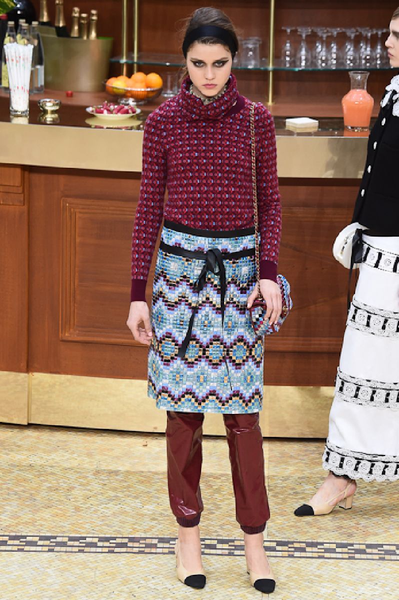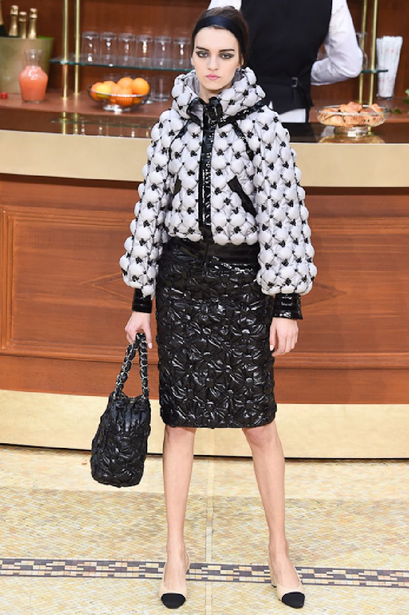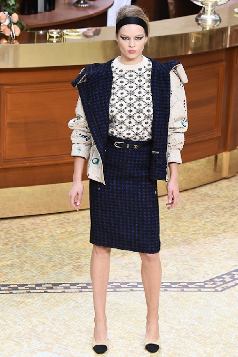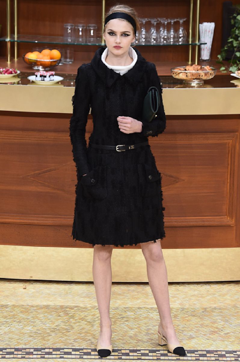 Como cada temporada, Chanel ha abierto esta mañana la penúltima jornada de la Semana de la Moda parisina bajo el título de Brasserie Gabrielle. Una puerta giratoria ocultaba un restaurante típicamente francés lleno de mesitas y sillas tapizadas en rojo en las que los invitados pudieron degustar su desayuno a lo Coco. Más tarde, cuando hubieron ocupado sus asientos, comenzaron a desfilar las modelos encabezadas por Cara Delevingne (que también cerró el desfile), dejando ver numerosos dos piezas con falso acolchado en cuero con sus bolsos a juego, para dejar paso a largos abrigos y faldas a cuadros, siempre dejando sitio obligado al blanco y negro. Destacaban además, los estampados con aires sesenteros en tonos violáceos y rosados. A posteriori, parecieron vestiditos negros algo sobrios, pero con mucha fluidez. Cuando ya se dilucidaba el final del show, las modelos comenzaron a interactuar con los camareros a modo de teatro, dando oportunidad a los asistentes de observar al dedillo los detalles de las prendas. Un espectáculo al que Karl ya nos tiene más que acostumbrados, pero que nunca deja de sorprender. Señores, la moda está servida. ¡Bon appetit!