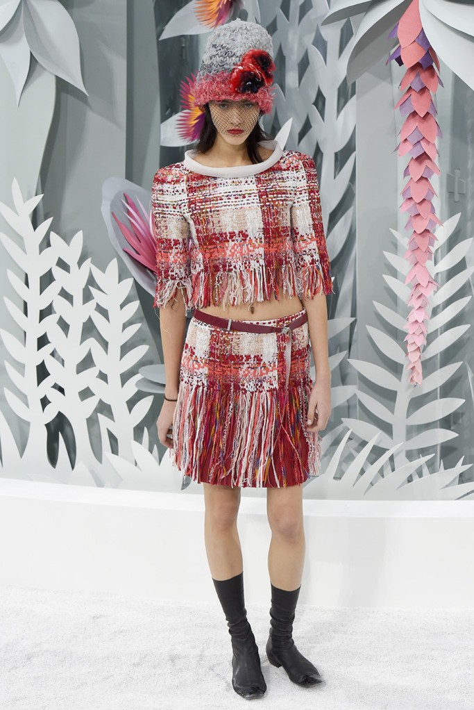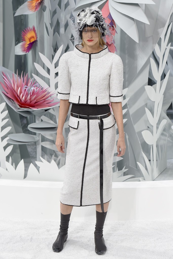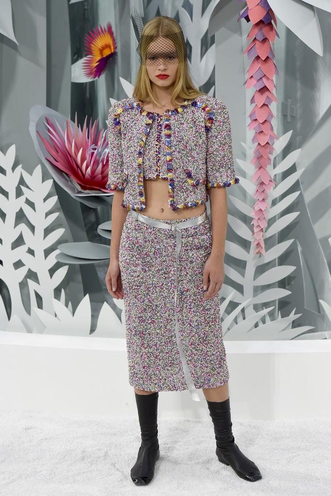 Floral y colorida. Así es la nueva propuesta de Chanel, arrancando el segundo día de la Semana de la Alta Costura. Bajo el techo acristalado del Grand Palais, se encontraba un acogedor invernadero, repleto de vegetación tropical. Llevando trajes clásicos en enérgicos tonos, que dieron paso a chaquetas cortas y faldas bajas, dejando la cintura a la vista. Sobre sus cabezas, sombreros de paja trenzada recubiertos con tul delicadamente colocado. Pero también, se vieron ‘beanies’ en tweed y mohair con sofisticados apliques primaverales. A medida que avanzaba el desfile, aparecieron vestidos de vuelo y crop-tops con un gran trabajo tras de ellos. Como colofón, la novia, inherente a la Alta Costura de la firma, vestida con un elaborado atuendo, largo y diáfano, con multitud de flores bordadas. Hoy más que nunca, se ha visto en Chanel la esencia de Mademoiselle; cortes rectos y estilizantes, prendas cómodas que formaban una completísima propuesta, aplaudida en una intensa y merecida ovación. “Hemos tardado casi un año en hacer esto realidad”, declaraba Karl Lagerfeld a Suzy Menkes tras el show. Lo que está claro es que la mente del Kaiser continua arrojando un aluvión de ideas, el concepto perfecto entre revolución y tradición.