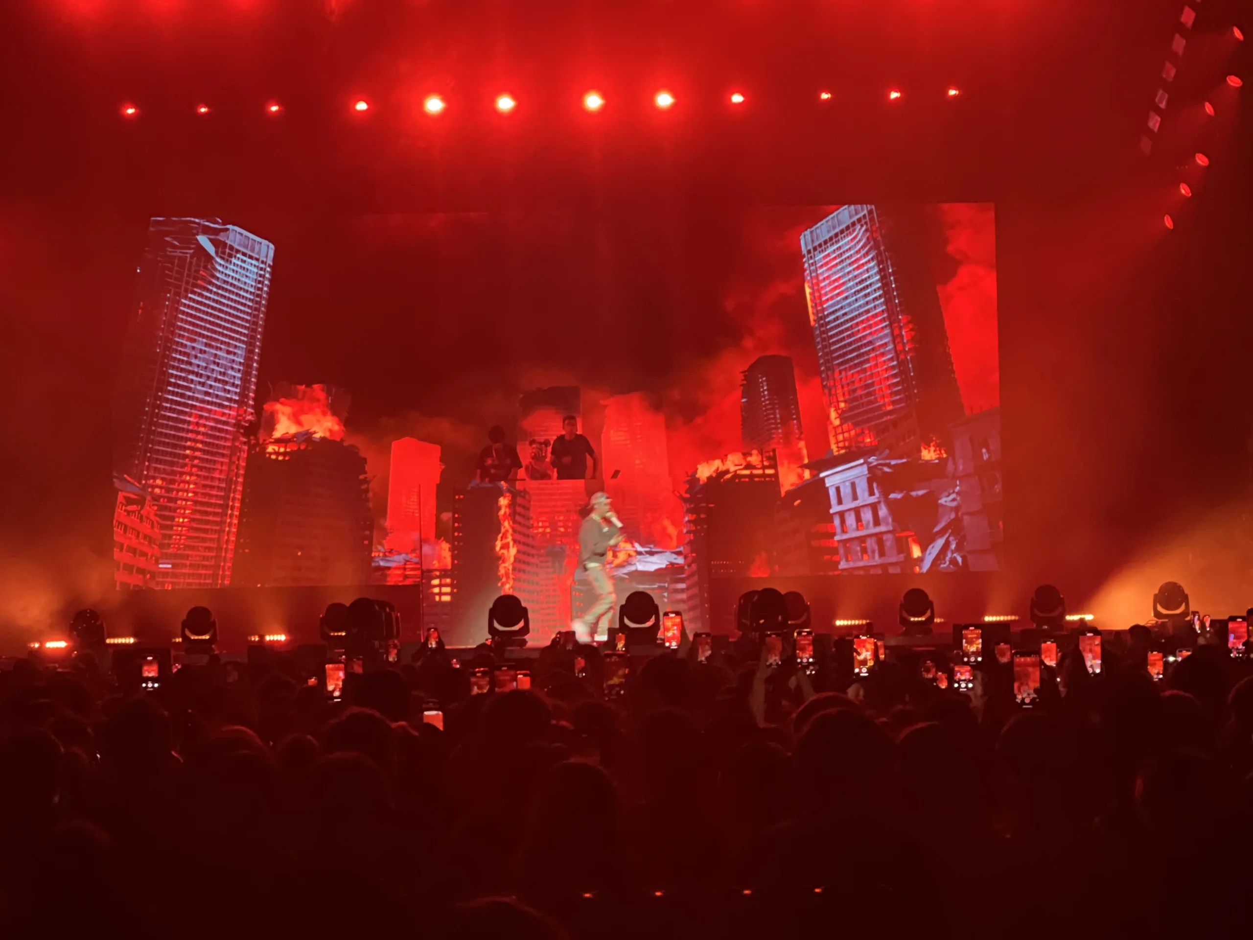 No le ha hecho falta decir gran cosa para que el público ardiese en euforia con prácticamente cada tema y cantase a coro las canciones de memoria. Después de un show lleno de mucho reggaetón y trap, el artista chileno cerraba con «GATA ONLY», poniendo, por última vez en la noche, el Movistar Arena a arder entre sus llamas apocalípticas y sus beats pegaos.