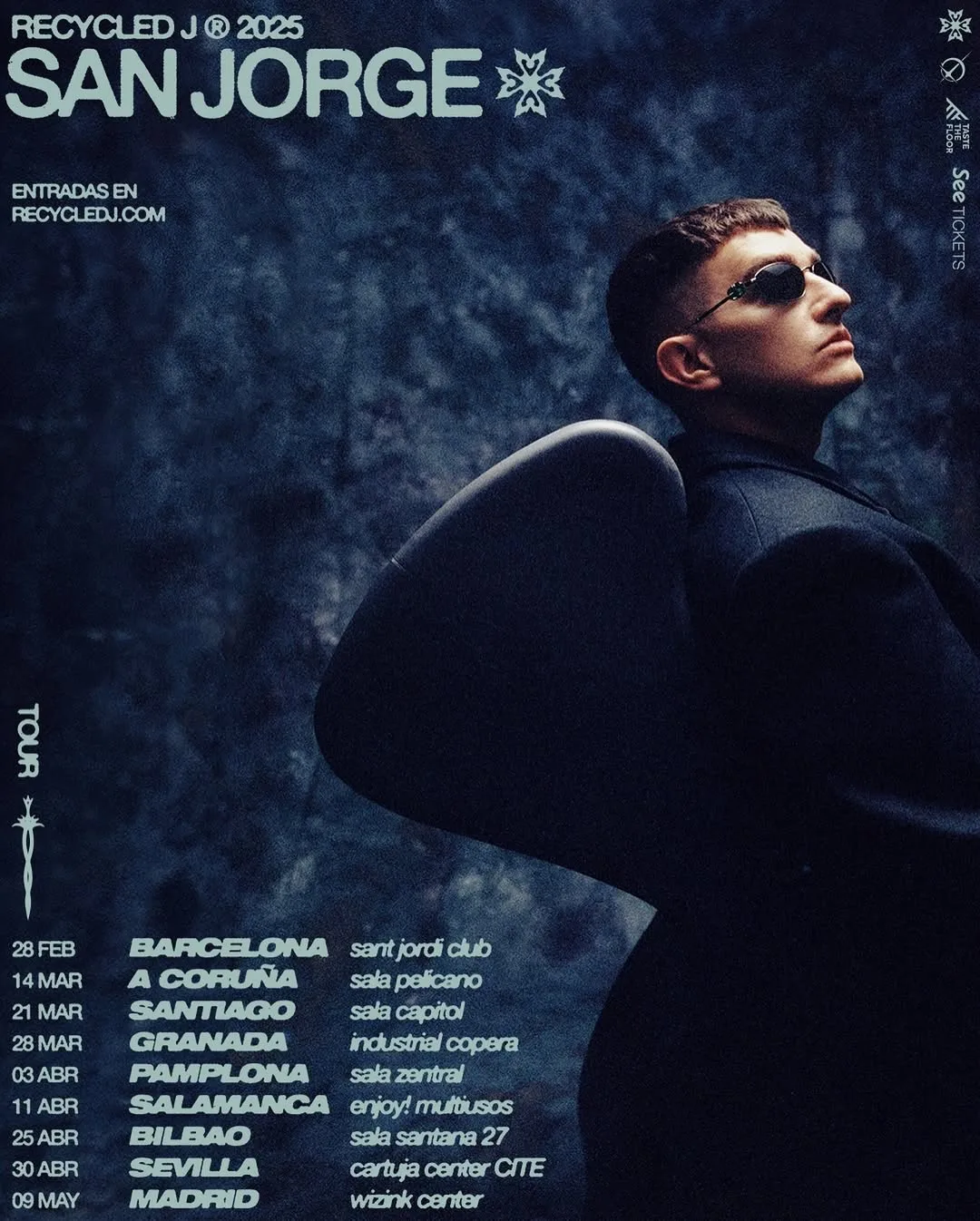 Después del éxito de «SAN JORGE» en las listas, Recycled J no podía hacer otra cosa que elevar ese éxito de las plataformas digitales a los escenarios. «SAN JORGE TOUR» ya ha pisado la mitad de las ciudades de su cartel, inundando cada una con esa fantasía oscura que deja la leyenda.