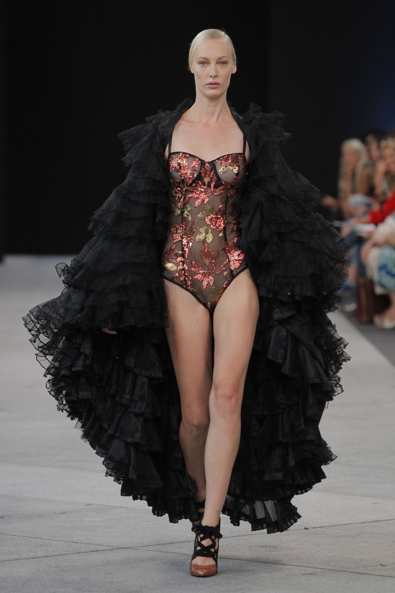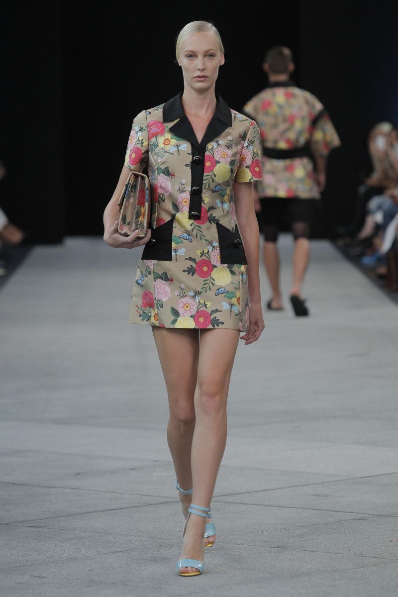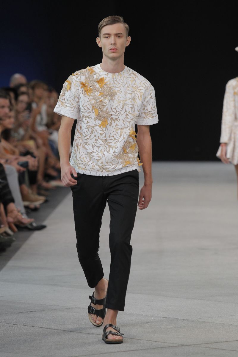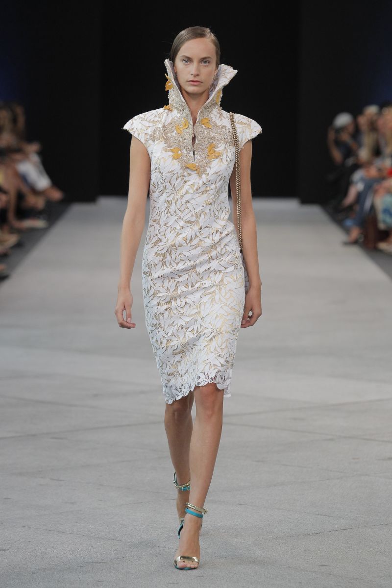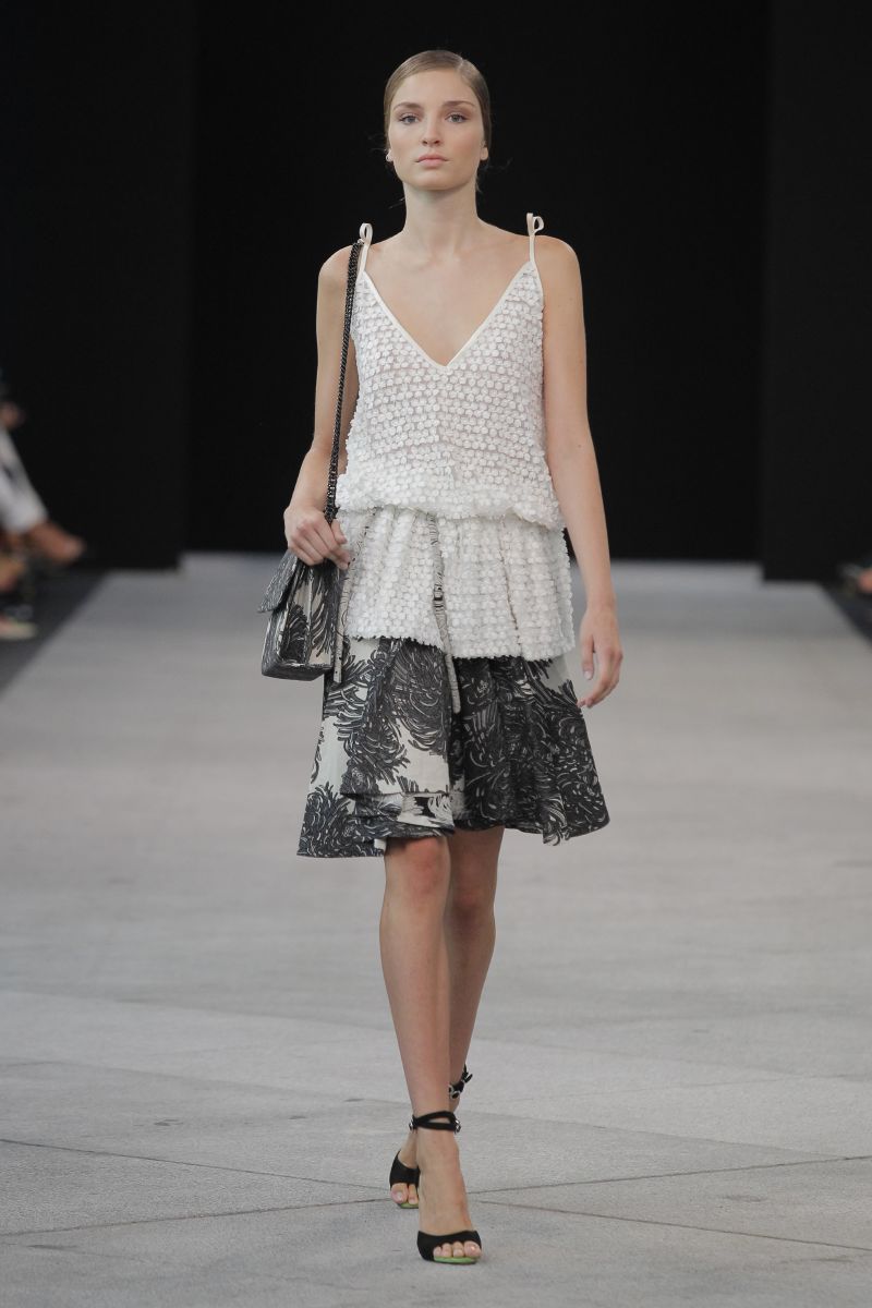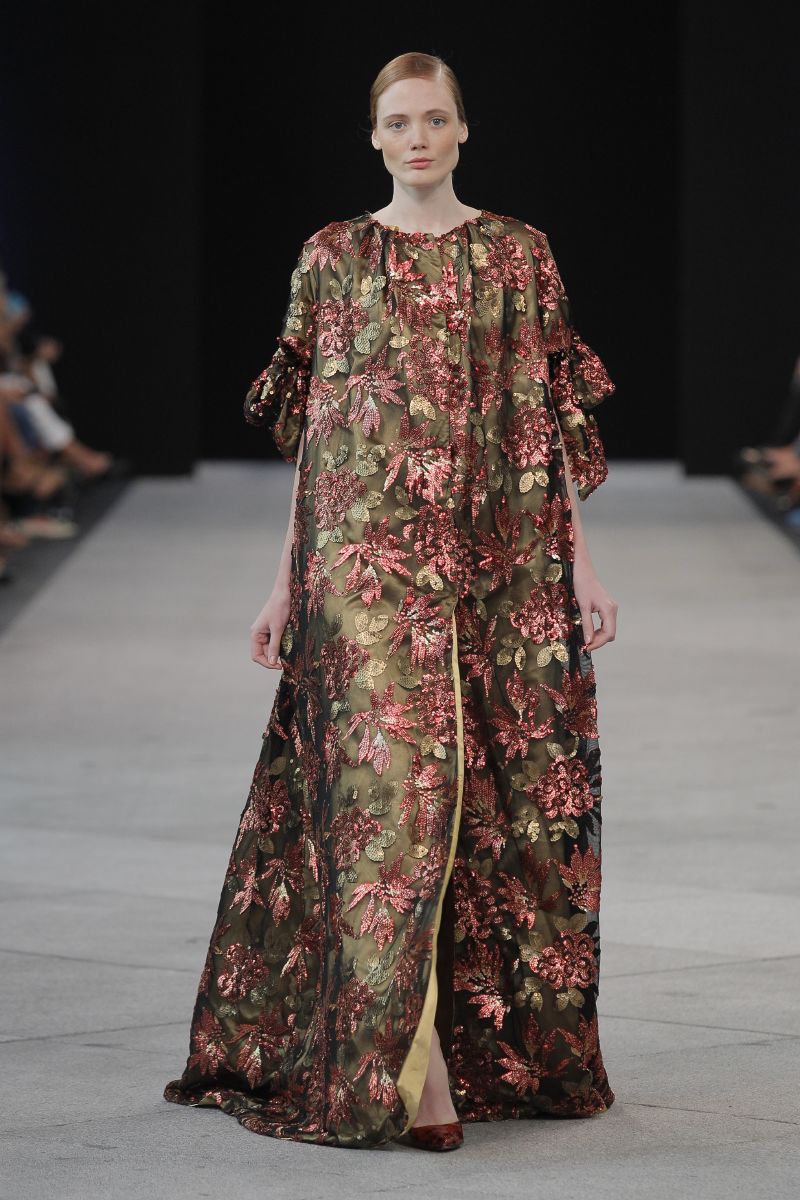 Sobre la pasarela encajes de flores de algodón, tafetanes, algodones, gasas y sedas combinaban con punto de ganchillo artesanal. Los colores predominantes han sido los marinos, el camel, el crudo y el beige, consiguiendo contrastes con el negro. Las flores, esencia de la firma, tampoco han podido faltar, que proliferan como bordados artesanales, con efectos tintados.