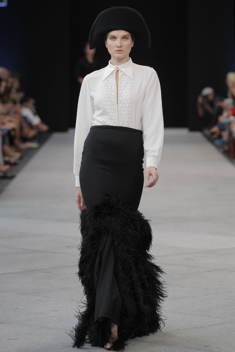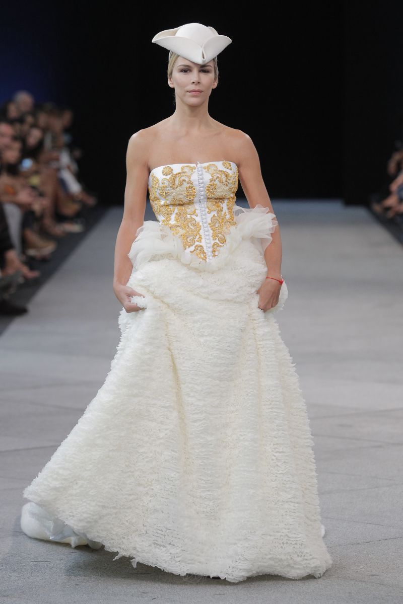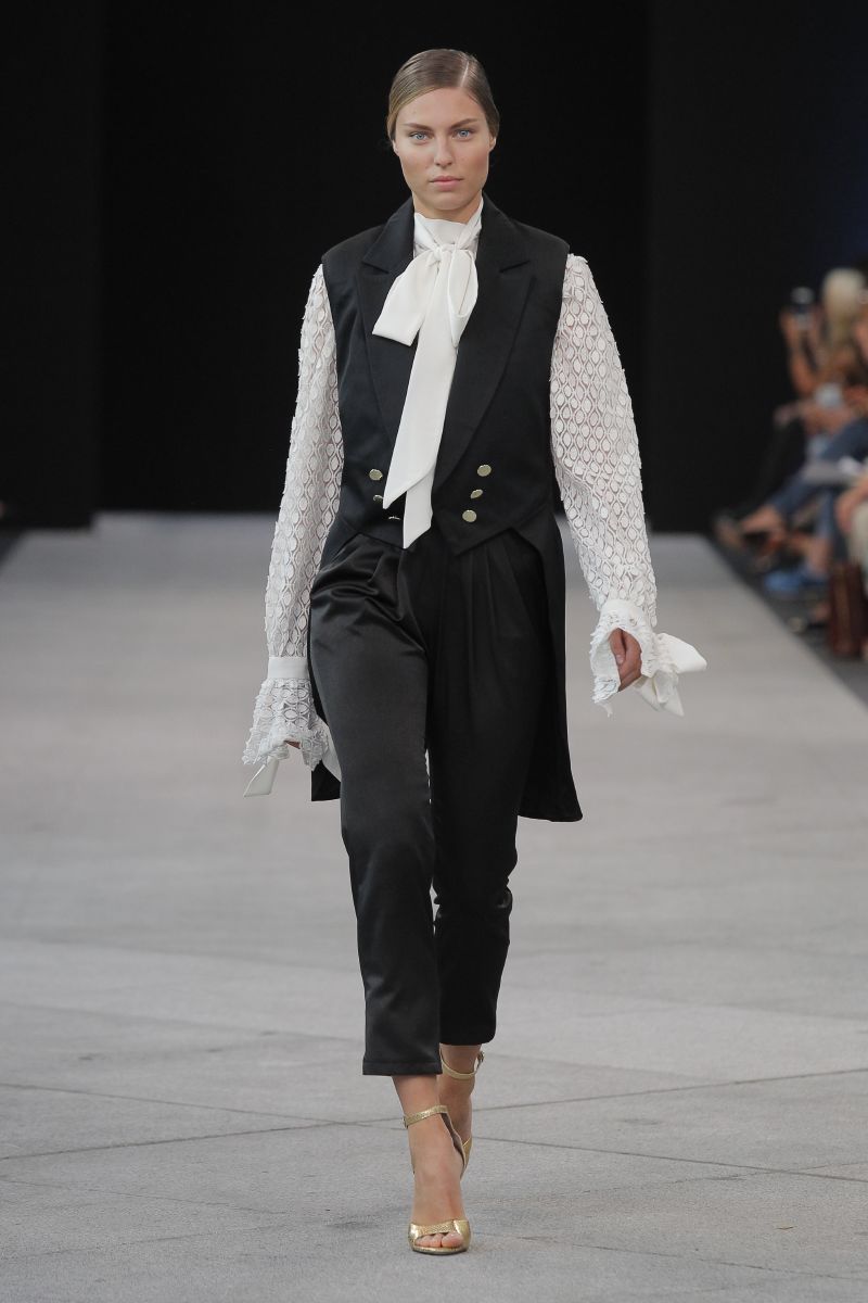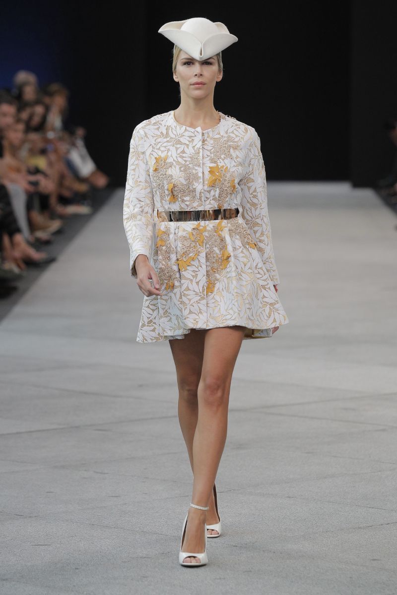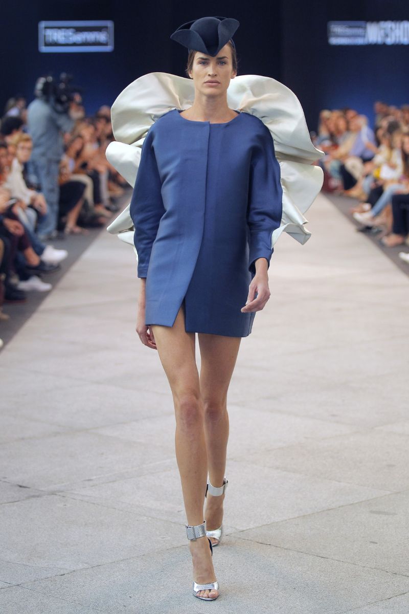 Para comenzar la pasarela TRESemmé MFSHOW WOMEN Eugenio Loarce, ha conmemorado el decimo aniversario de la firma transportandonos hasta Paris, la ciudad de la moda por excelencia. De este modo la marca ha titulado su colección “Hotel Crillo”, un lujoso palacio situado en la avenida Campos Elíseos que era frecuentado por María Antonieta, personaje que ha servido de inspiración. Según ha comentado el diseñador, el objetivo era captar la esencia del estilo francés del siglo XVI y transportarla hasta hoy en día. Para ello la pasarela se ha llenado de formas teatrales y militares, mezclando el barroquismo con la feminidad.