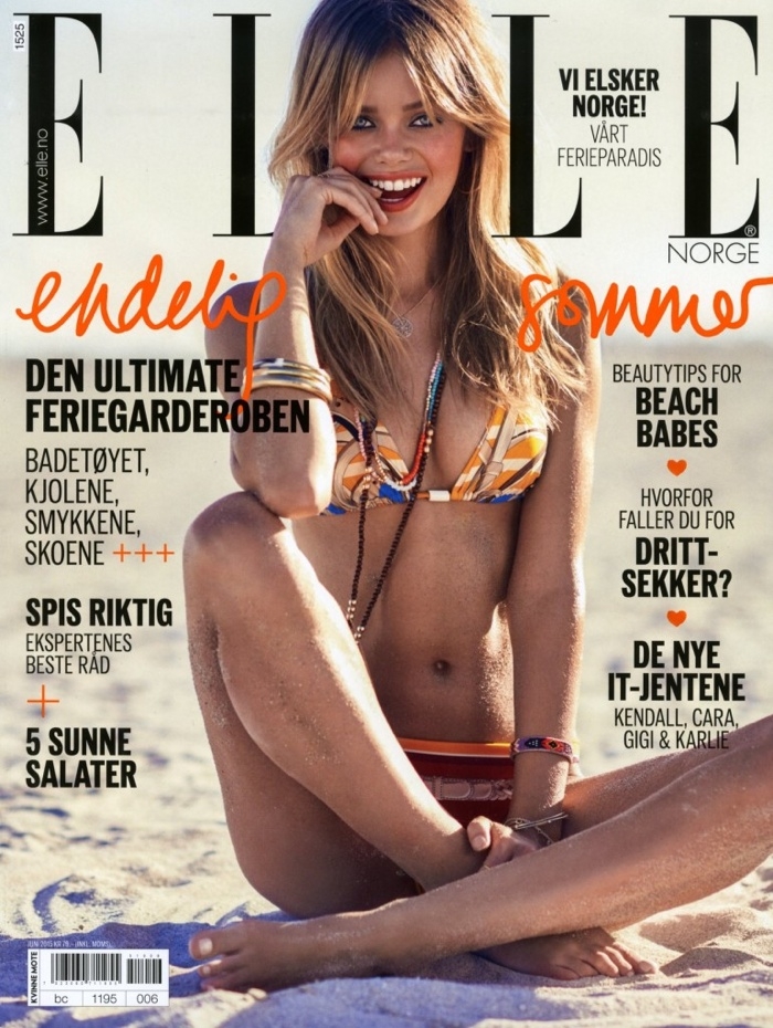 La belleza rubia Frida Aasen opta por unirse a la tendencia bohemia para la portada de junio de la revista ELLE Noruega. Luciendo un peinado con flequillo, Frida posa para Petra Middlethon con estilos de veranos que van desde bikinis a vestidos adornados con flecos y encaje estilizados por Isabel Watson.