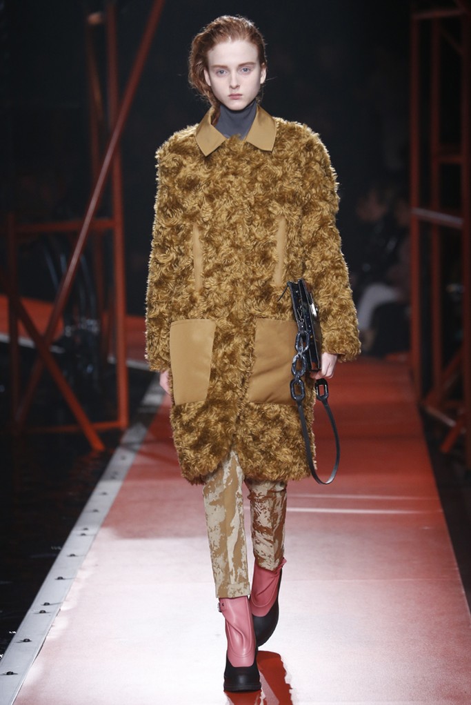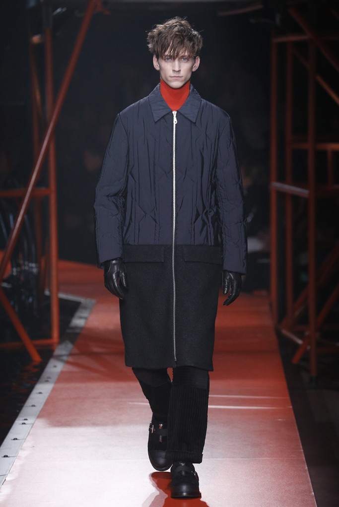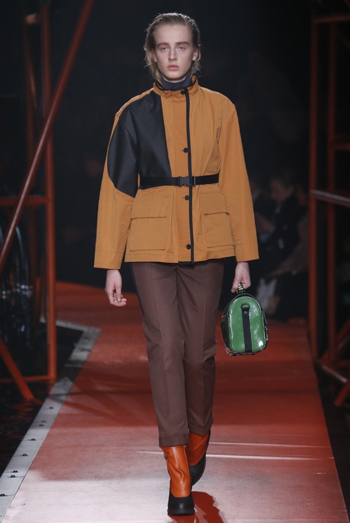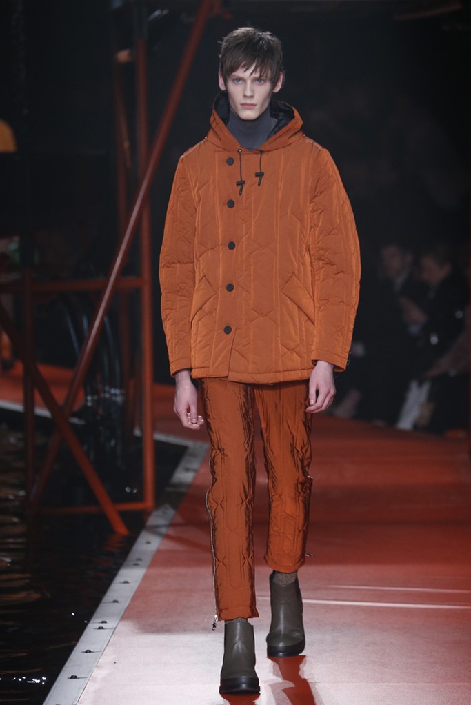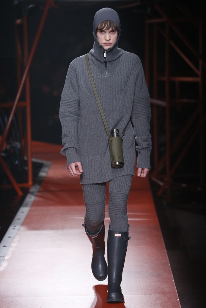 Hunter Original nos presento su nueva colección, para hombre y mujer, que abrió con una serie de abrigos acolchados en caqui, ocre y óxido combinados con pantalones tobilleros, y botas muy elásticas. La marca también presento abrigos de lana o nylon de inspiración trench en colores mostaza, rojo y negro con detalles en los hombros. Los estampados fueron de inspiración de geológica a liquen o mineral. También aprovecharon para presentar numerosos accesorios como bolsos de cuero.