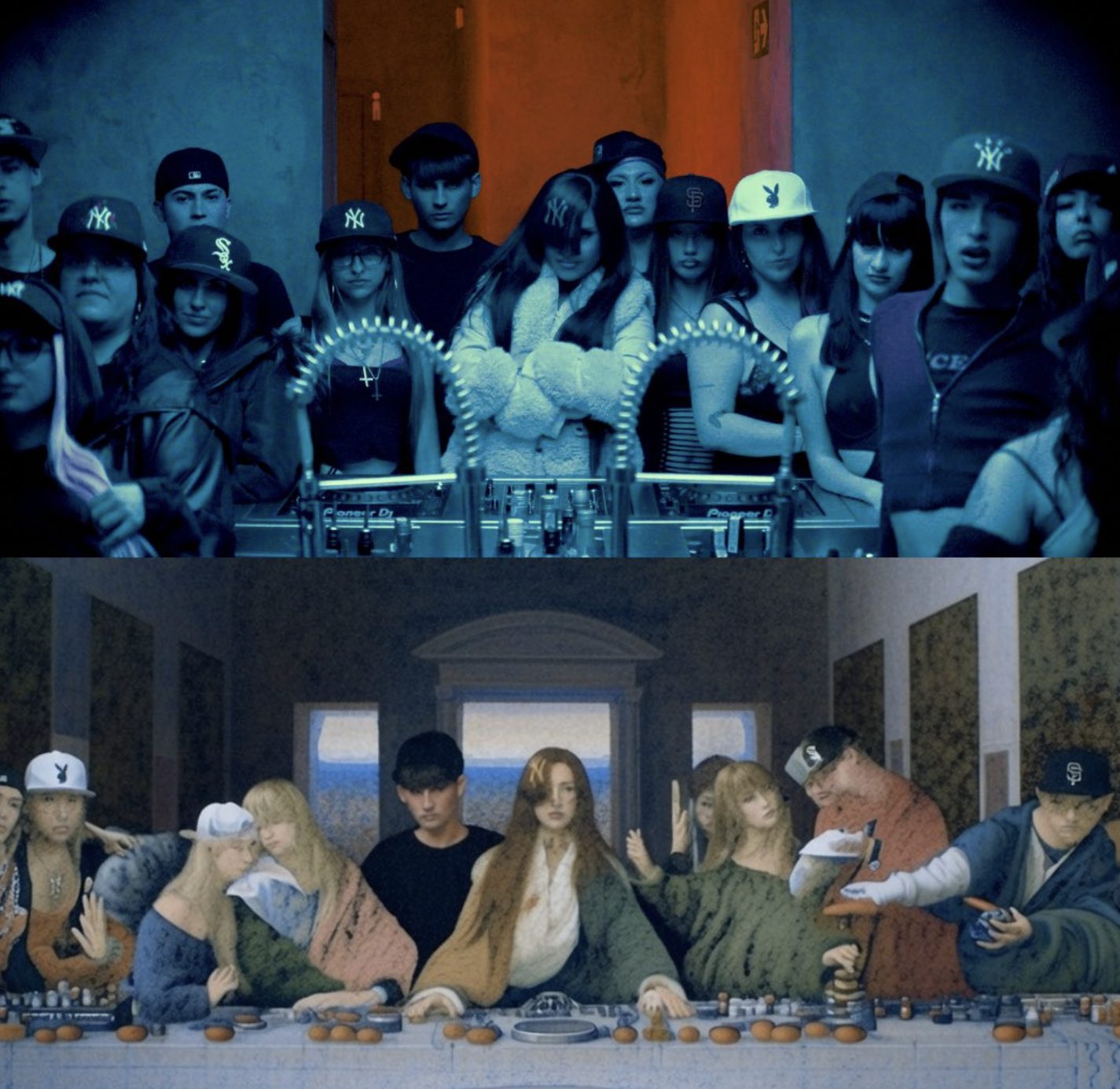 Esta idea se refuerza visualmente en el videoclip, donde Kristina y su equipo recrean La Última Cena, reinterpretada dentro de un contexto urbano. La composición mantiene la estructura de la obra original. Una mesa larga con figuras a los lados, y en el centro, alguien que acapara toda la atención. Al ocupar el centro, Kristina asume el rol de liderazgo y protagonismo, similar a Jesucristo.