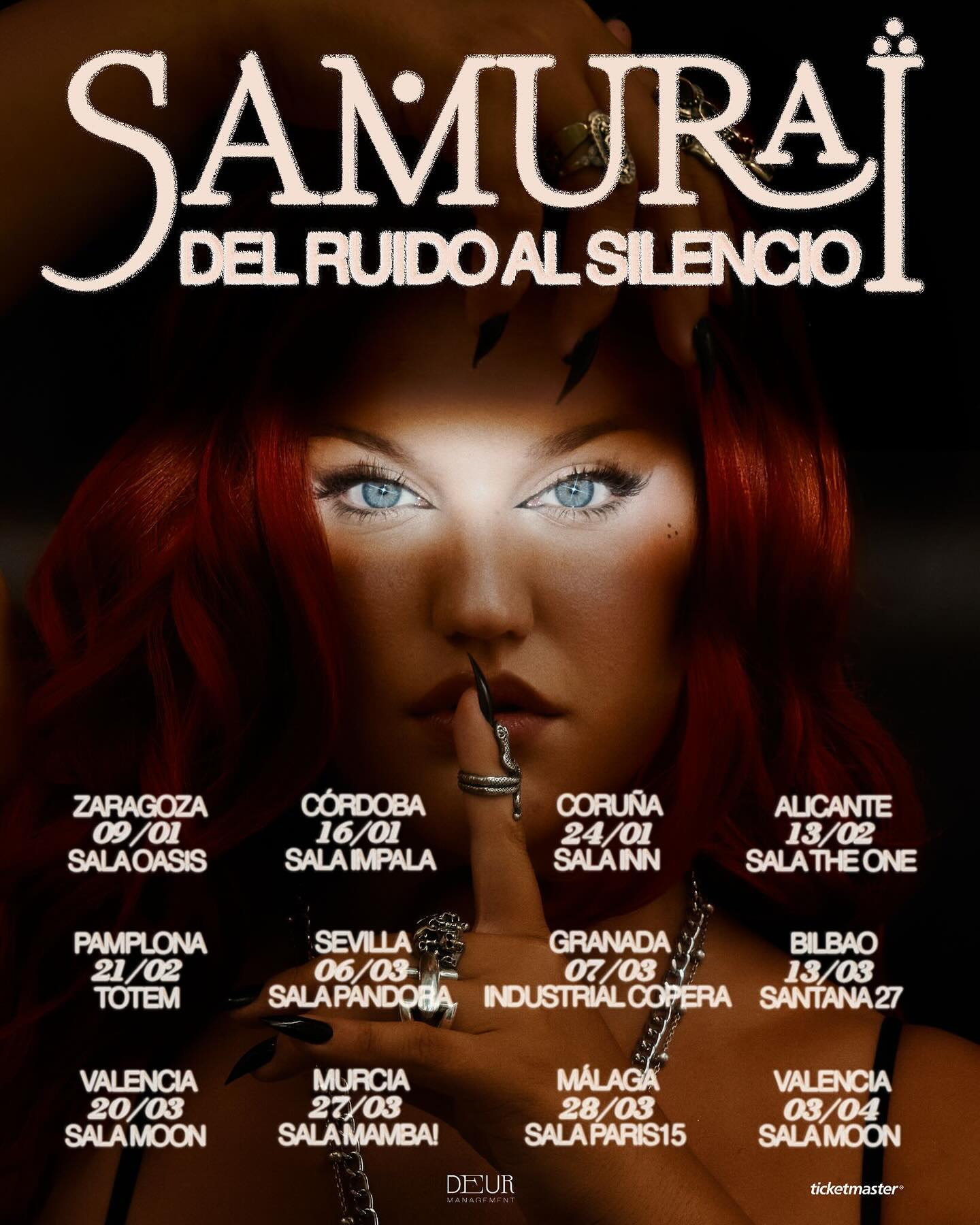Hace una temporada que Samuraï se encuentra trabajando en su proyecto en Ciudad de México. Un «retiro» creativo del que estamos empezando a observar sus frutos y que pronto aterrizará en España. Más concretamente en enero del año que viene la artista volverá a España a continuar su gira. Una gira que, como vimos hace un par de meses, tiene dos partes: la primera «Del Silencio Al Ruido» y una segunda parte, que comienza en enero que recibe el nombre contrario, «Del Ruido Al Silencio» y en cuyas fechas sigue faltando dos nombres clave: Madrid y Barcelona.