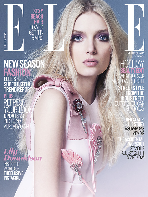 La modelo británica Lily Donaldson aterriza en el número de agosto de la revista ELLE Reino Unido para aparecer en portada con un vestido con carácter de los 60s en rosa de Prada decorado con broches y flores de cristal. La belleza fue fotografiada por Kai Z Feng y contó con estilismos por Anne-Marie Curtis para la imagen.