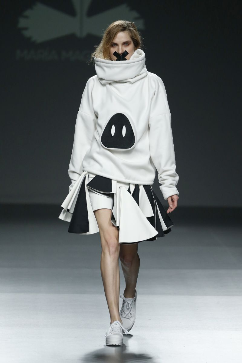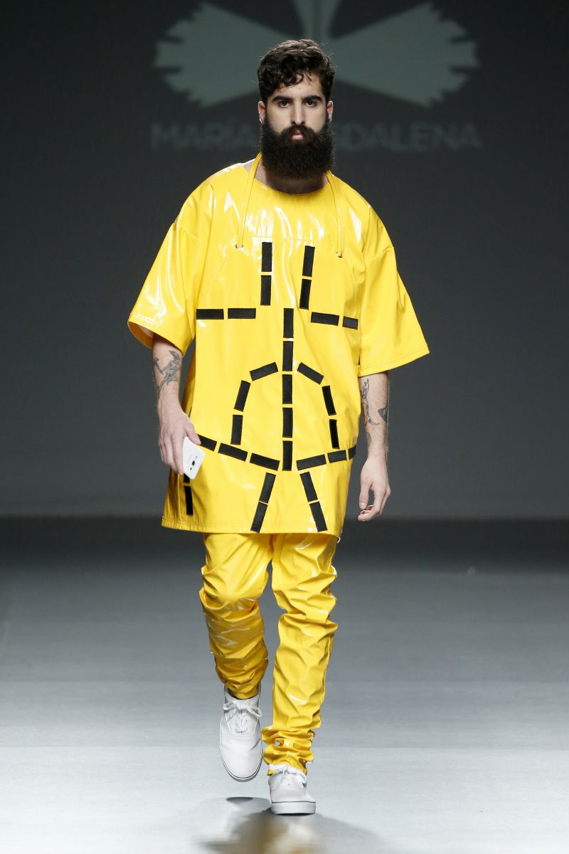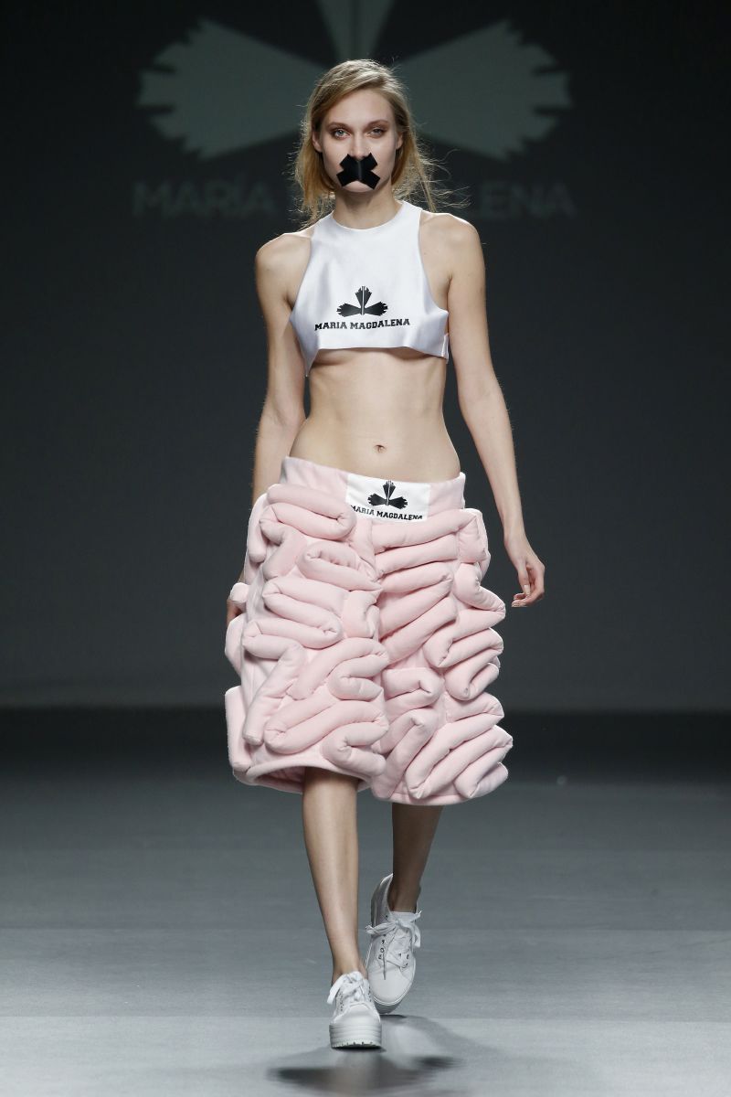 Maria Magdalena hizo su primera aparición en el Samsung EGO de la Mercedes-Benz Fashion Week Madrid para cerrar la jornada de desfiles del EGO junto con David Catalán con una apuesta muy reivindicativa y transgresora reivindicando el pensamiento individual con patrones muy arriesgados y con relieves en algunas prendas relacionadas con los cerdos y algunos famosos memes estampados.