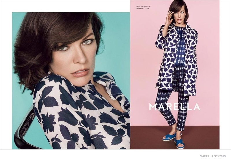 Convirtiéndose así en la séptima campaña consecutiva como imagen de la marca italiana Marella, Milla Jovovich repite como imagen de la campaña PV 2015. Nos presenta una linea lleva de colores vibrantes, patrones jacquard y estampados muy gráficos para elaborar un armario muy completo. Aquí tenéis algunas imágenes.