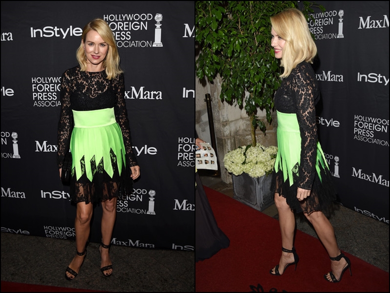Naomi Watts: A la estilista de la actriz le ha debido de entrar el síndrome del mal gusto porque esta es la segunda semana consecutiva que Naomi aparece en esta lista. El diseño, que es de Fausto Puglisi (Colección Resort 2016), parece un traje de bruja de Juguettos. El panel verde neón que cubre la falda no pinta nada, es como si en el taller les hubiese sobrado tela y la hubiesen puesto ahí de cualquier manera. Da la sensación de inacabado. Si el evento hubiese sido una fiesta de disfraces, la actriz hubiese tenido un buen puesto en el ranking, para un festival, no. ¡DEJA LOS DISFRACES DE BRUJA PARA CARNAVALES!