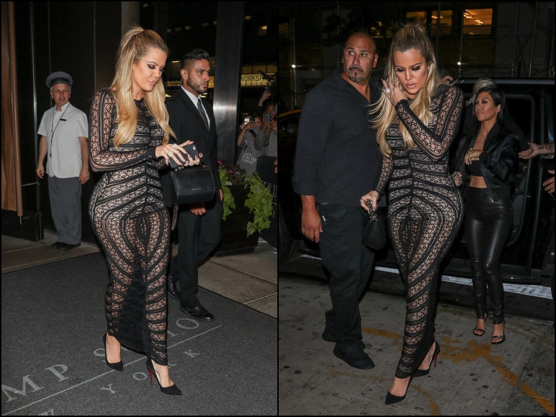 Khloe Kardashian: ¡SORPRESA! Una de las hermanas Kardashian ha aparecido en nuestra lista. ¿A que no os lo esperabais? Yo sí. Siendo sinceros este artículo semanal tiene el futuro más que asegurado gracias a cualquiera de las integrantes del clan Kardashian. Esta semana le toca el turno a Chloe, que se plantó una media de rejilla cedida que tenia por casa y se fue a cenar tal que así. Se me vienen dos preguntas a la mente. Una es, ¿Por qué venden este tipo de ropa? La respuesta es sencilla. Para que alguna de las Kardashian la lleve. Y la segunda, ¿Eso que lleva debajo del “vestido”, es una camiseta? Porque si lo es, la veo un poco corta. En este caso no veo la diferencia entre ir vestida e ir desnuda. ¡LAS TRANSPARENCIAS EN SU JUSTA MEDIDA!