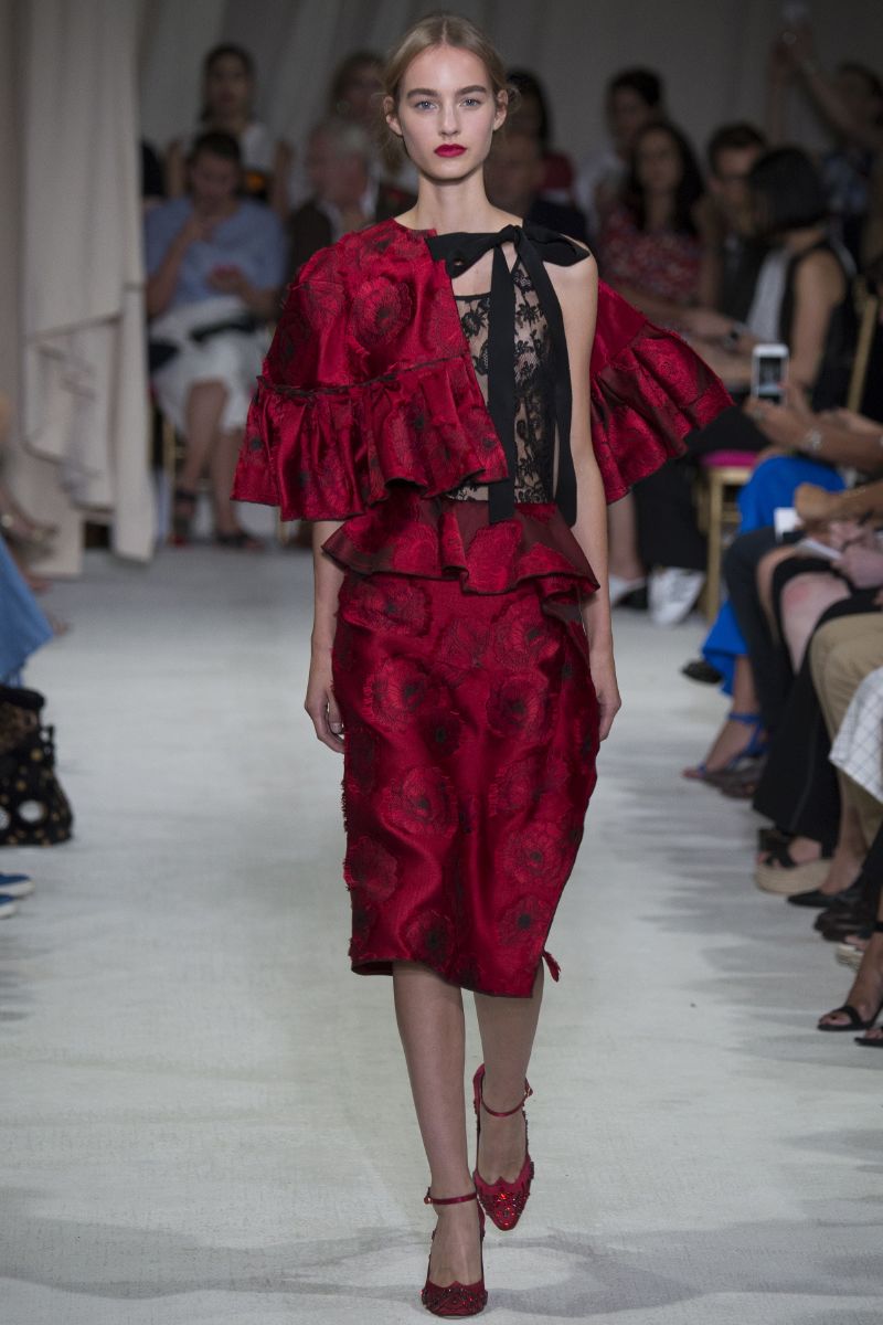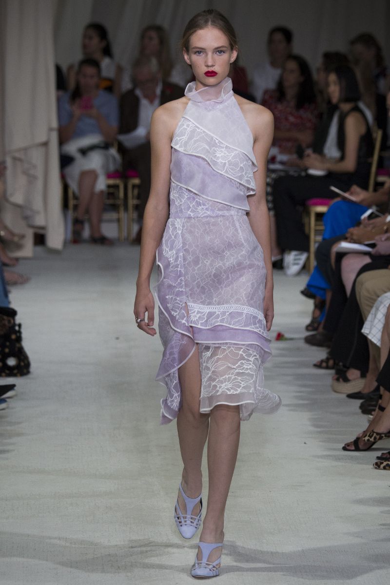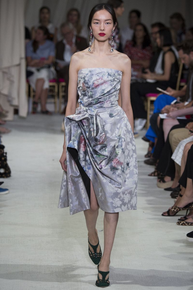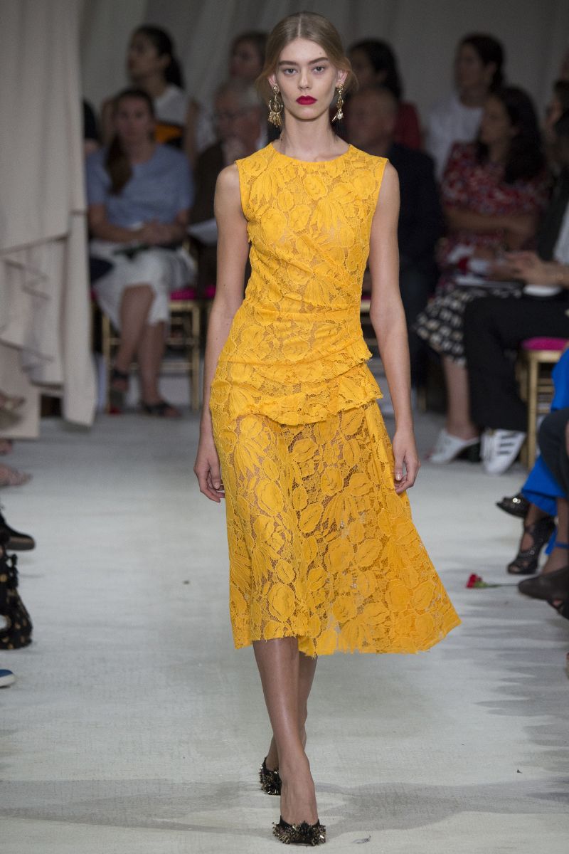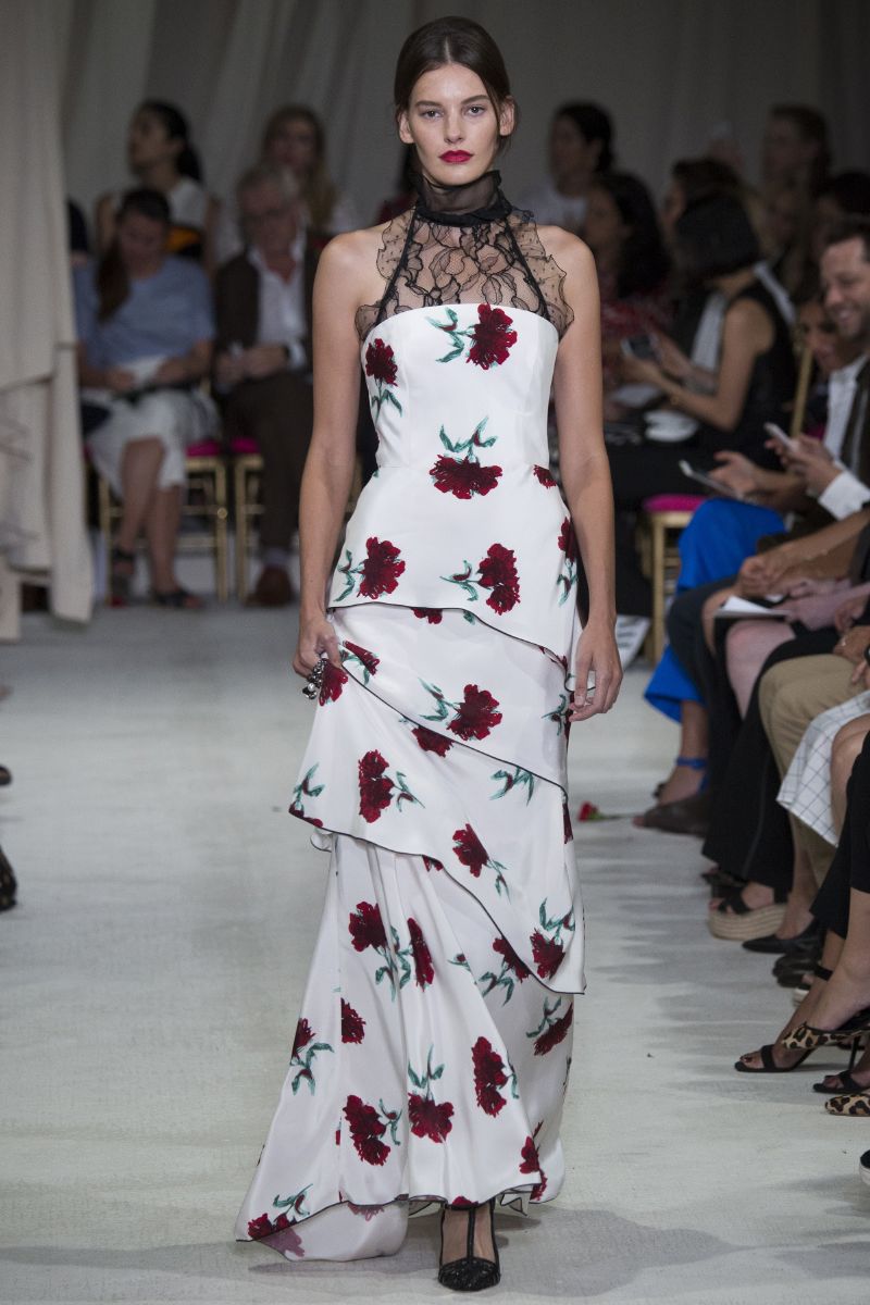 Peter Copping ha sabido mantener el legado de más de 50 años que dejó hace un año el fallecido Oscar de la Renta. La pasarela se llenó de diseños regios y señoriales, con estampados florales clásicos, delicados encajes en forma de flor, juegos de volúmenes, brillantes rasos y transparencias discretas.