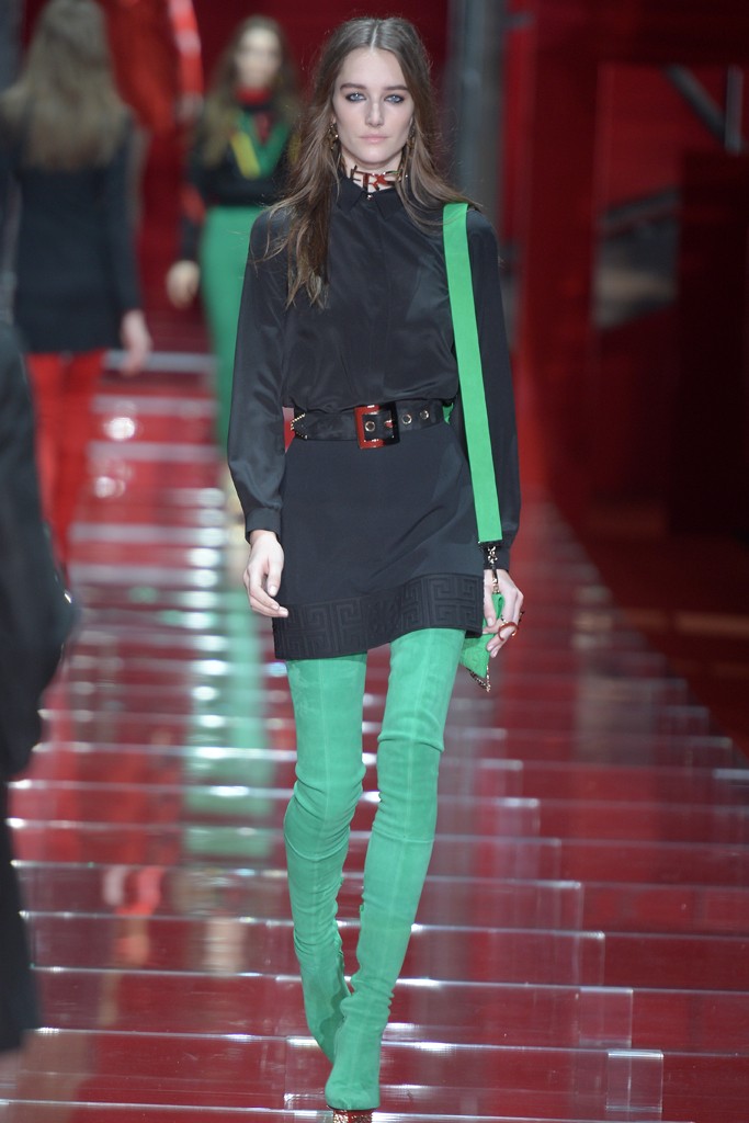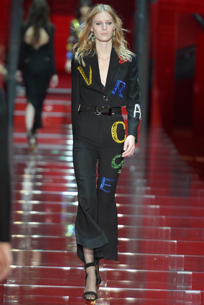 El diseño de la «llave griega» es desde la fundación de la casa un tema constante en sus colecciones. Esta temporada, además se complementa con motivos del mundo digital para conquistarnos con emojis, hashtags y colores muy brillantes. Hecha para todas las situaciones, esta colección abarca creaciones para el día o deslumbrantes piezas para noche. Esta colección es un guiño para el público más joven en el que todavía quiere Versace centrar más su atención.